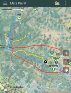 Kompis och Jag på våra dagliga skogsrundor, idag blev det denna rutt. Bra med ”tramp” nere på flolandet👍🙂
